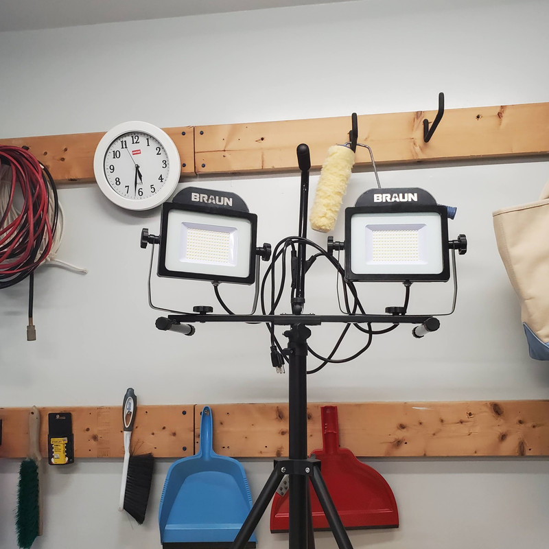 I got this light from Harbor Freight. I'm doing a lot of refinishing and my cataracts are ripening, so I need a lot of light to see what I'm doing. I cannot find this particular light now on the Harbor Freight website, it may have been a special buy. If I remember correctly, it is 18,000 lumens, which is 300 times as bright as an incandescent 60 watt bulb. Even though it is LED, it gets pretty hot.