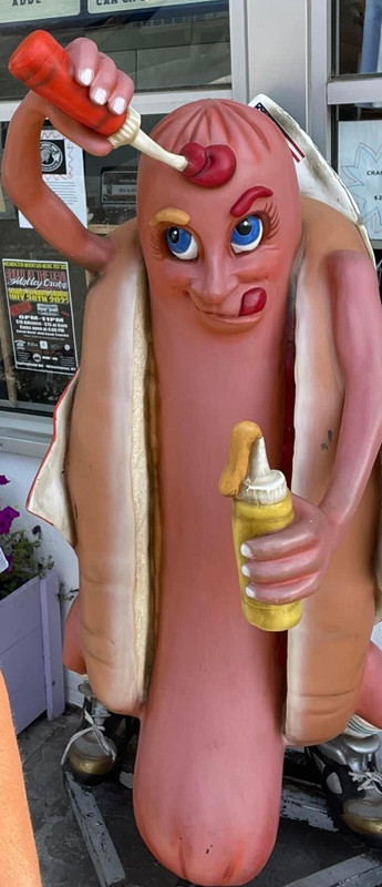 There's a food place in my town called the Great American Hot Dog, and I'm thinking that statue would be more appropriate there, given the American flag, than at a dairy barn. Then again, that hot dog place is actually well known for its seafood, especially lobster rolls and clams in season.