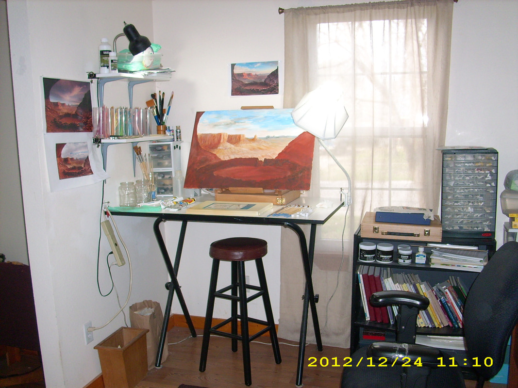 (60,612 posts)south to Mexico. It looks familiar but I can't place it. You did a wonderful job. I like using acrylics too, Though they do dry faster then oils. PS I like your workshop too.