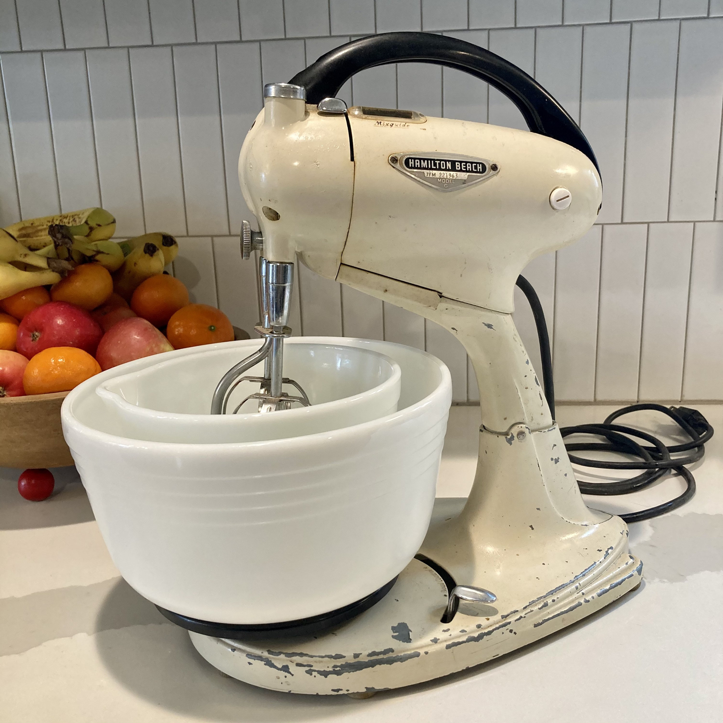 (19,375 posts)a '50s (AFAIK) Hamilton Beach kitchen mixer that once belonged to my grandparents. It still works great. Although I don't work it hard. Looks similar to this: