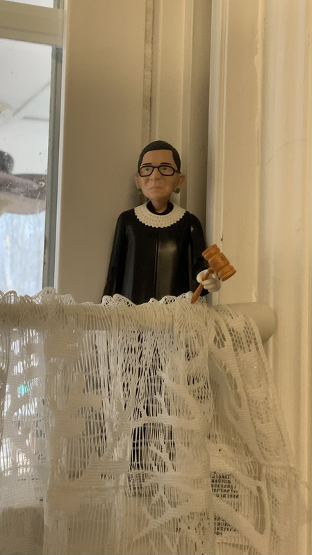 (5,393 posts)Ive been gradually cleaning my kitchen from top to bottom and last night moved everything off the counters to scrub them and the backsplash area down. Also moved the fridge to clean underneath and, lo and behold, found RBG!