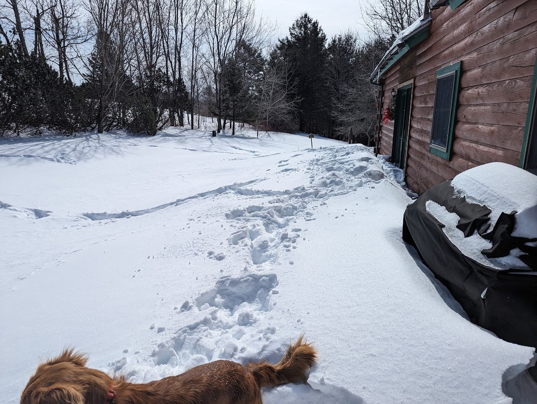I should have known better. 2 separate storms this week put 2-1/2 to 3 ft of fresh powder on the ground. I have a wrap around deck (approx. 1000 sf) that I will be shoveling off this AM. Then I need to get the solar panels on the garage roof cleared....probably 1/2 foot of snow up there to clear.