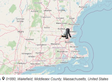 Also tried the zip code for the town I grew up in, just north of Boston. Here's the result. Ends up further south even though the zip code is further north.