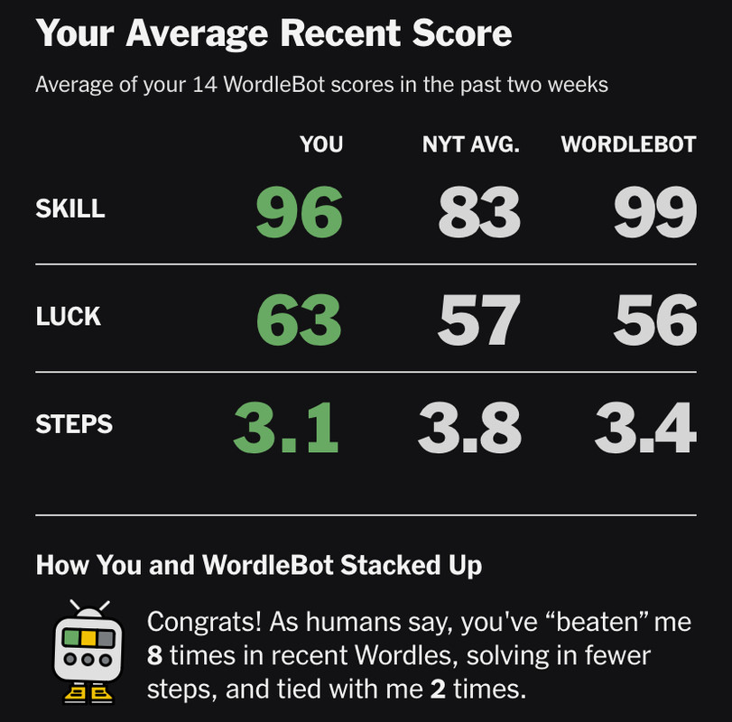(1,855 posts)It's the first time I've used "after" as a starter. And then when I saw I had three of the letters, I figured I was screwed. It usually works out that way. I haven't nailed one in two for a while, so it felt good. But strange.