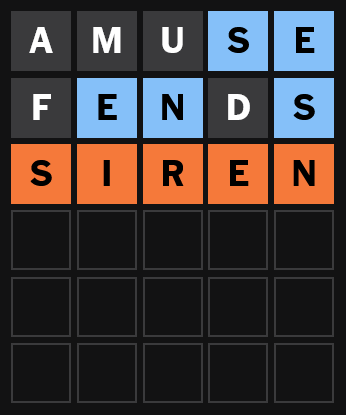 I've been alternating between SIREN and TREAD as my starter word.