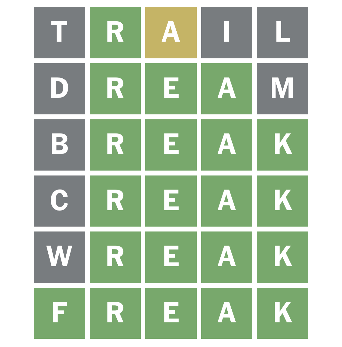 ⬜🟩🟩🟩🟩 Wreak