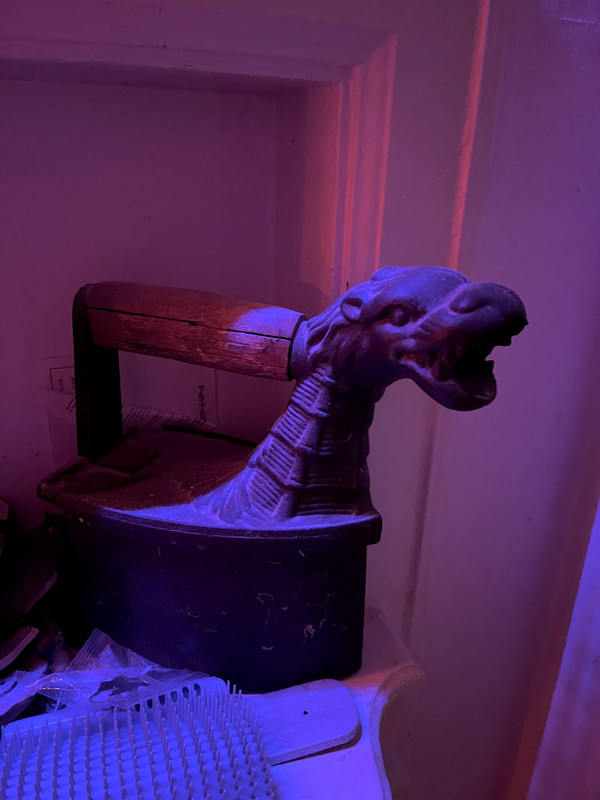 It weighs a shit ton (cast iron) and has ash inside yet, so well used. I just can't fathom women of that era dealing with laundry day--bedding, shirts, dresses for a whole family.