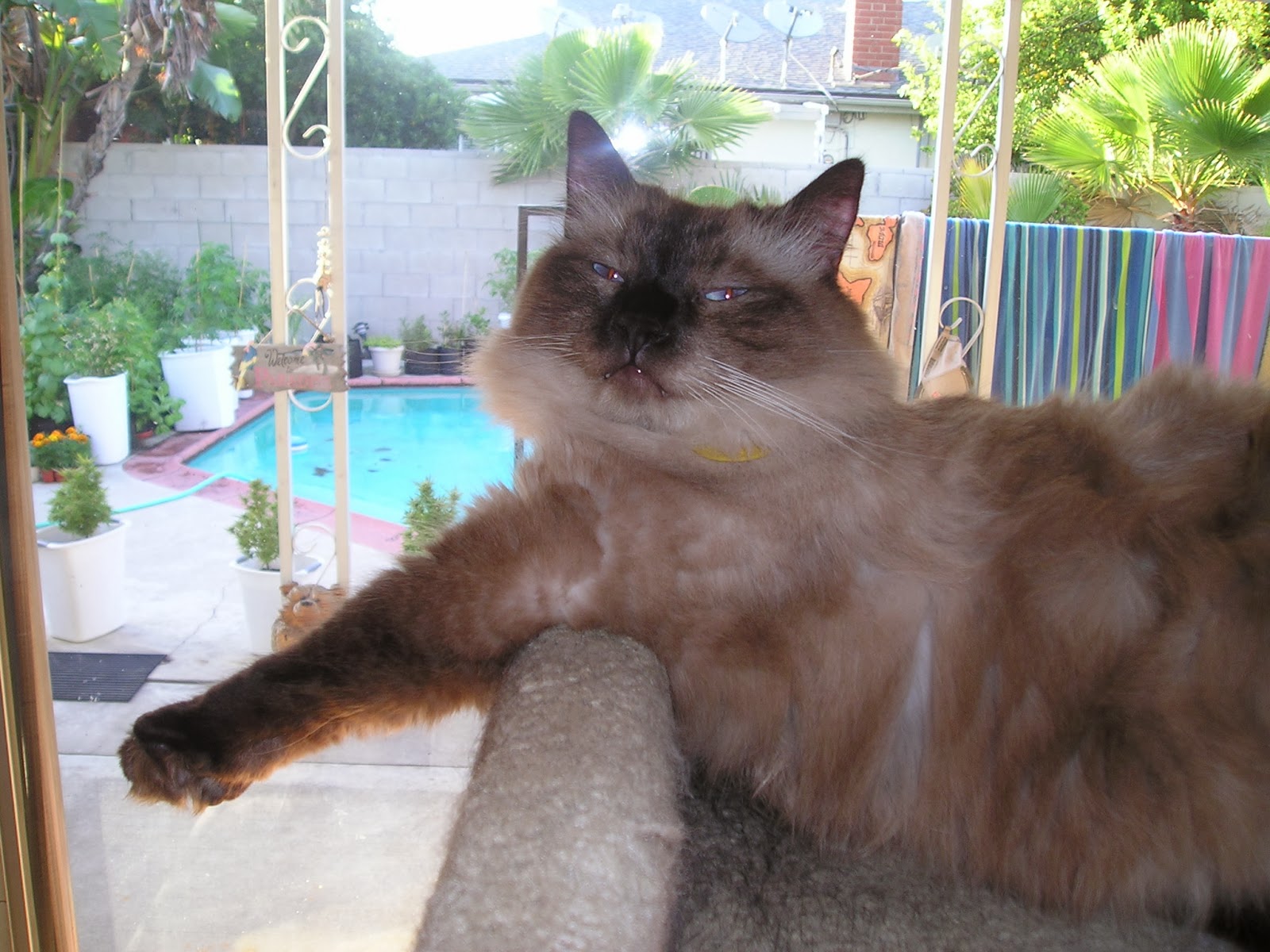 Here she is back home from being boarded for a couple of days a couple of summers ago while the A/C in my apartment was being fixed. She was happy to be home, obviously.