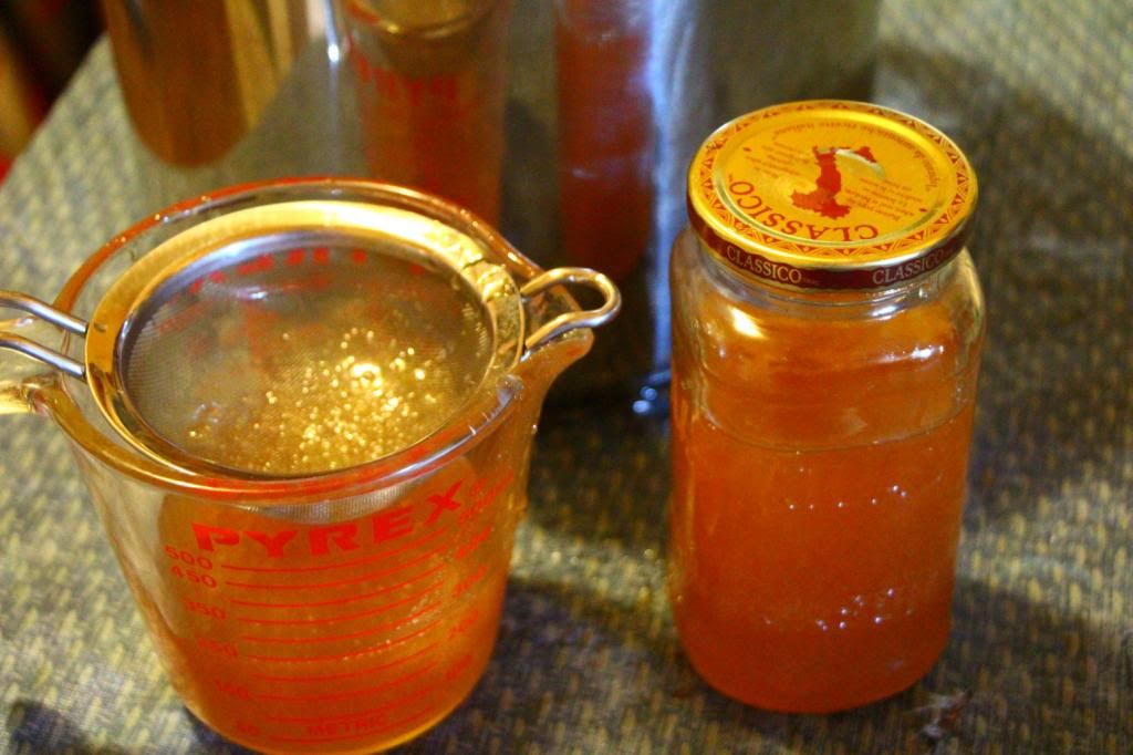 It's easier to just jar it, and after about 1 or 2 months the remaining particles will form a small sediment on the bottom. I was pulling spoonfuls off for my tea before it completely settled though. That sort of thing doesn't bother me. That pile yielded about 1.5 gallon, and all of my friends got a small jar for Christmas this past year.