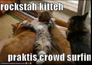 Or at least post some cute cat pics to ease my mind, dammit! No dog stuff . . . felines only. Dogs stink and exacerbate my migraines . . . and yes, I can smell dogs through the intertubes. Don't even try.