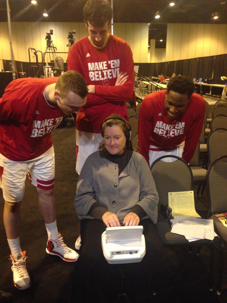 It all started when Wisconsin teammates Nigel Hayes, Frank Kaminsky and Sam Dekker discovered the until-now-anonymous NCAA stenographer after Friday night's postgame presser. They were genuinely fascinated by the process.