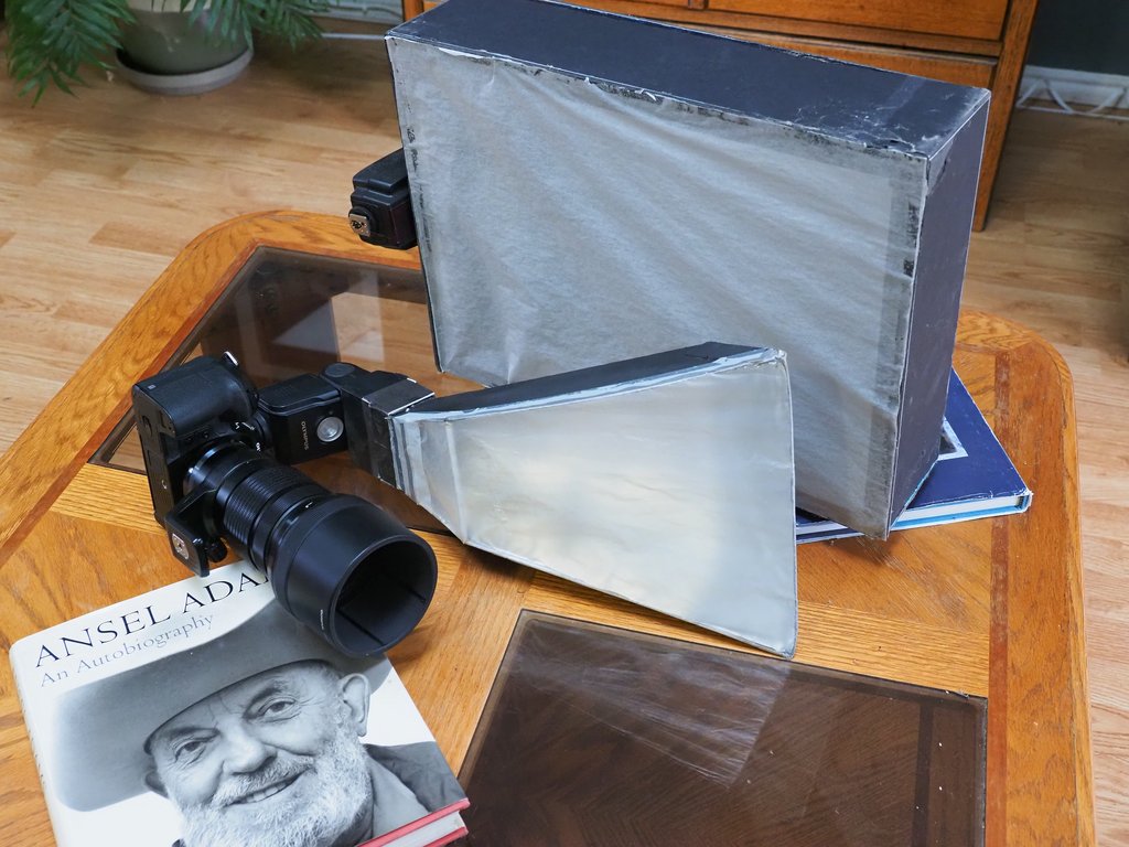 The box is versatile in that it can mimic the 'everywhere' light like your setup and once I covered all the reflective walls it can produce very directional light. The directional light, while it can be harsh without reflectors and other modifying devices, gives shape (modeling) to the subject.
