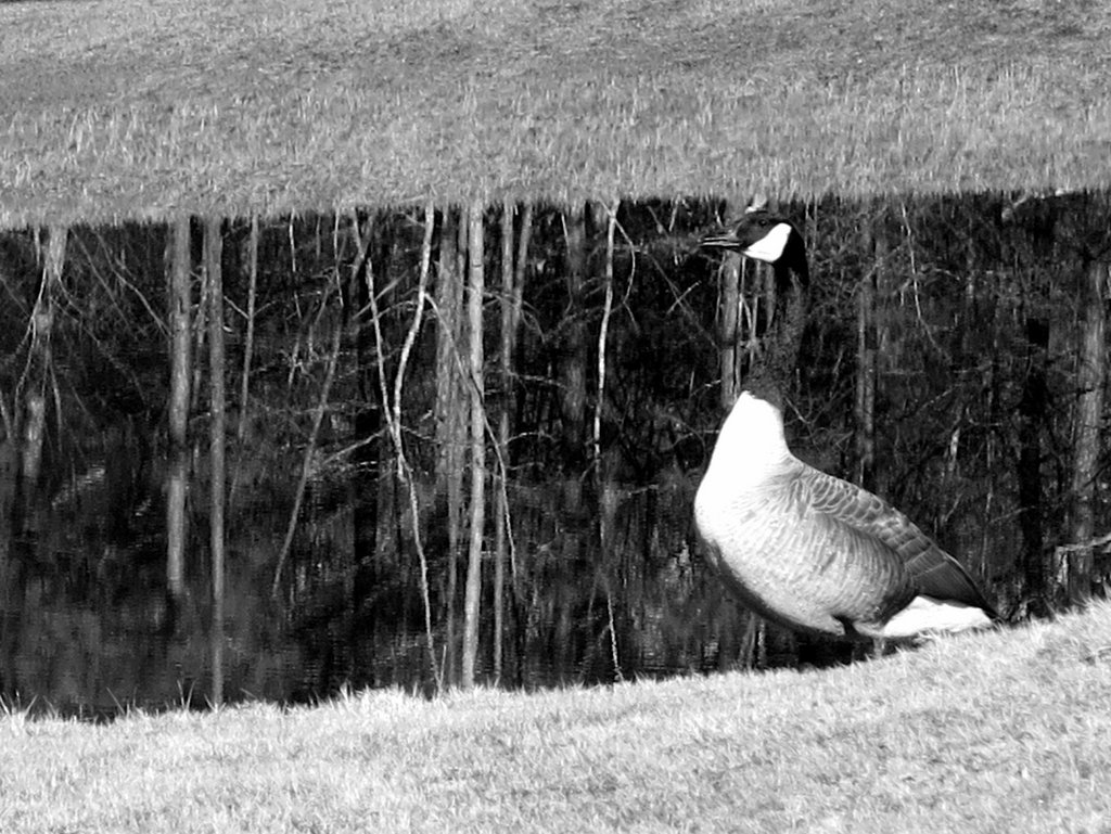 And one of a pair of geese this morning that have been hanging out at the pond behind my house (B&W)