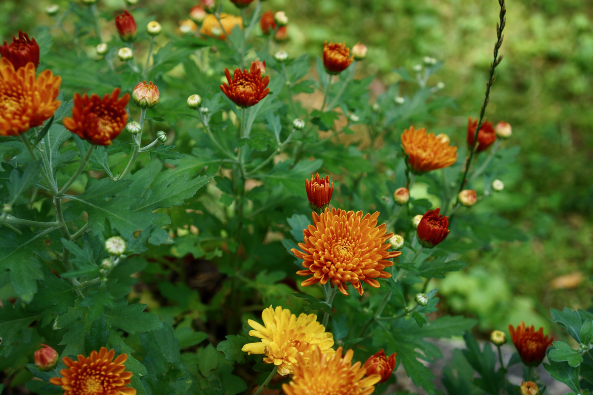 I have several green thumbs but no botanical knowledge, and the strange fact I had mums blooming what to me is out of season made me get the camera.