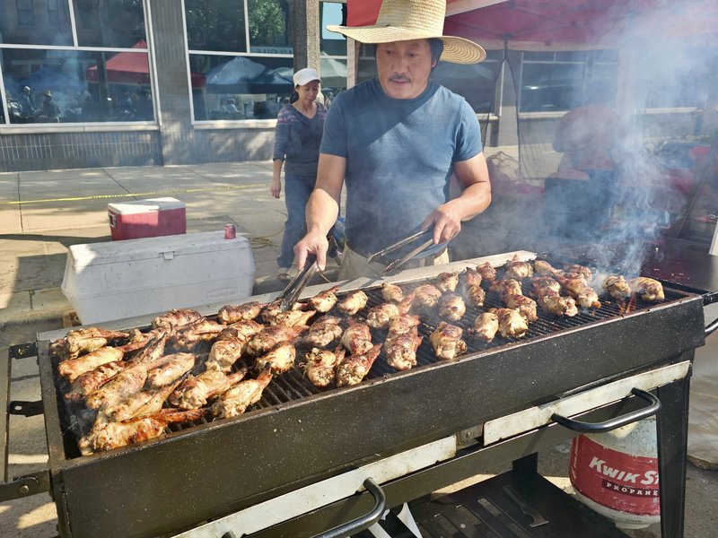 This gentleman grills 500 chicken wings during the Farmer's Market. I can't imagine stuffing them - very labor intense.
