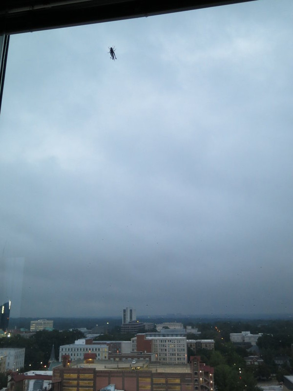 He was slowly crawling up the window and eventually out of sight. I hope he doesn't try to jump off the building!