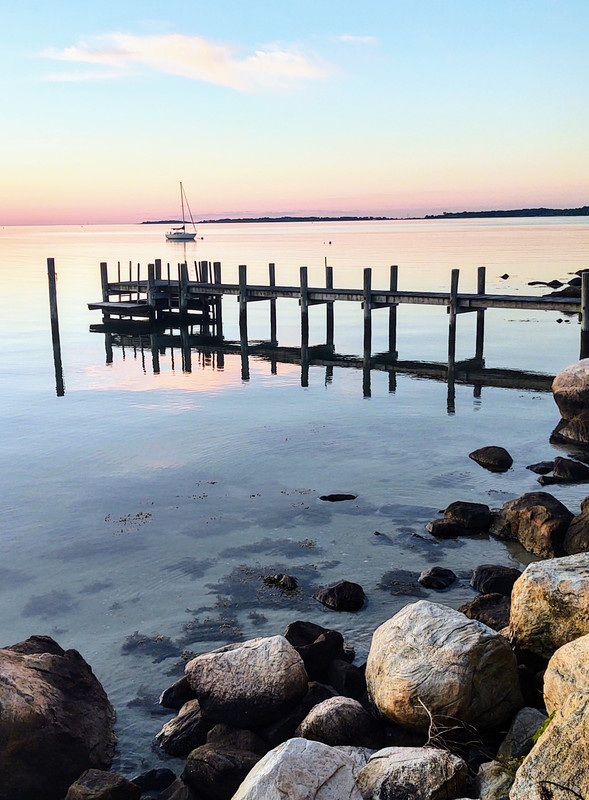 (11,171 posts)One imagines stepping from boulder to boulder and reaching the pier and following it out over the water, all the while seeing the sky beyond, the sailboat at anchor reflected in the water, detailed above the surface, mast reaching against the sky. Gull sounds all around.