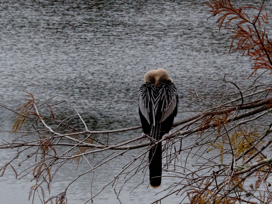 The limpkin spent most of the morning keeping his/her head under the covers, occasionally peeking out to make sure every thing was secure around the perimeter.