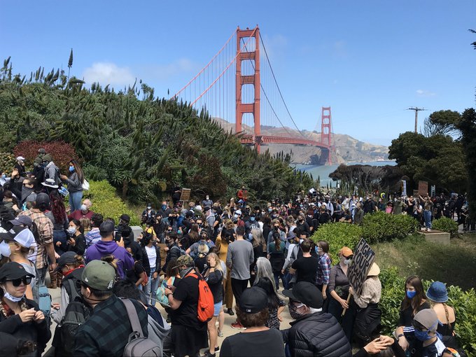 17 year old Tiana Day of San Ramon organized todays Golden Gate Bridge #BlackLivesMatter march with support from her father Tiayadi. Here she addresses the demonstrators before the start of the march at noon @sfchronicle