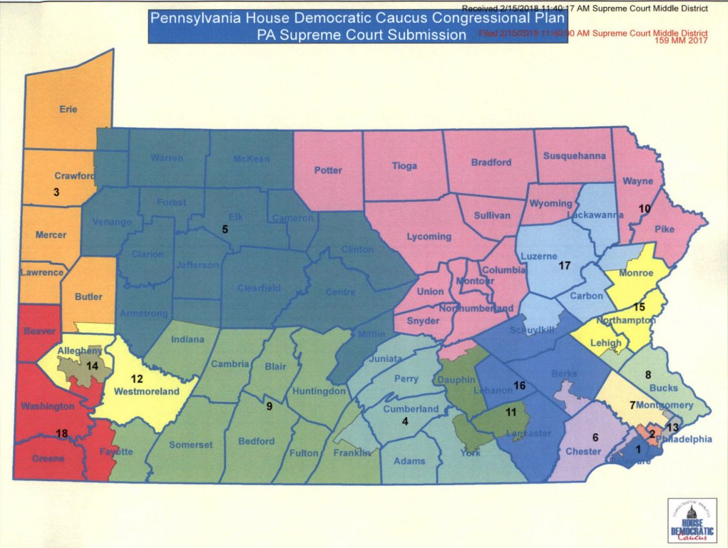 As of today, GOP leaders, the League of Women Voters, Governor Wolf, the House Democratic leaders, the Senate Democratic leaders, Lt. Governor Mike Stack, and a group of Republican voters have submitted various maps in time for the 15 February deadline of the PA Supreme Court. Now the PA Supreme Court shall consider the maps and make a decision by Monday, 19 February.