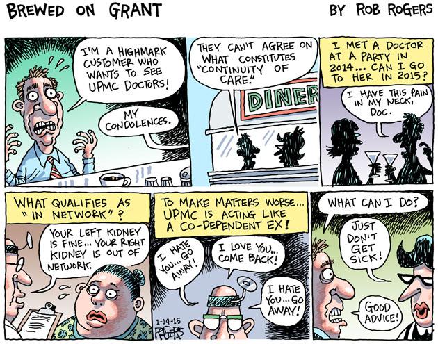 (6,819 posts)There was a recent consent decree signed that was supposed to reduce the problems. Among other provisions, UPMC and Highmark agreed to stop spending a fortune to attack each other in ads. (The local TV stations were making a fortune from that fight). However, as noted in the last link in the OP, a judge accused UPMC of already violating the new agreement.