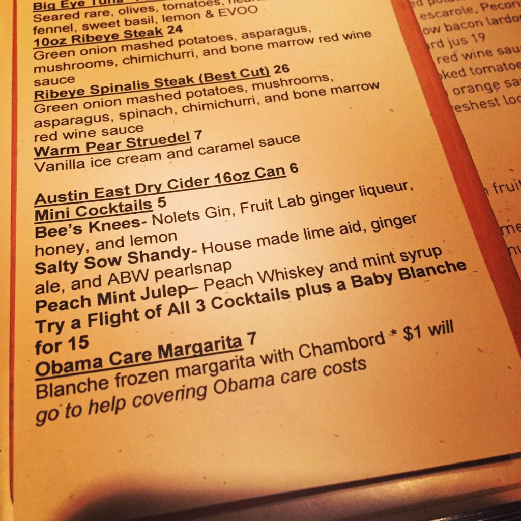 Read more: http://www.burntorangereport.com/diary/23772/austin-restaurant-blames-obamacare-margarita-prices