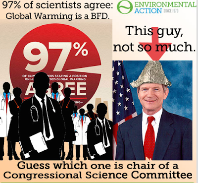It was a big ha, ha/LOL moment when the GOP House leaders decided to make crackpot Texas Christian Scientist Lamar Smith chairman of the House Science and Technology Committee. One Republican staffer told me "one of them" (presumably Boehner but he would;t confirm my suspicion) was "slightly drunk" and laughing so hard that he pissed in his pants and had to go change. Lamar Smith is a proud primitive when it come stop Science and uses his perch on the committee to chastise and attack scientists and to fundraise for himself by pushing anti-science dogma from, for example, polluting industries. Saturday morning, Sharon Lerner posted at The Intercept that Smith's problems with Science are becoming a problem for Austin and San Antonio area voters with Smith. "For most of his four years as chair of the Science Committee," she wrote, Smith "has served up more spectacle than policy. As arguably the showiest climate denier and opponent of environmental regulations in Congress, Smith has orchestrated climate change hearings that are the scientific equivalent of pro-wrestling matches."