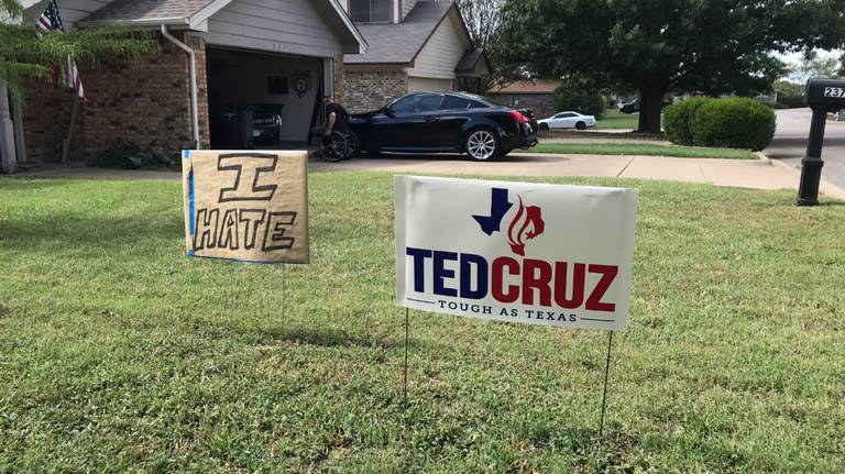 The Fort Worth man decided to put out a yard sign supporting his choice for the U.S. Senate seat, Republican Ted Cruz.