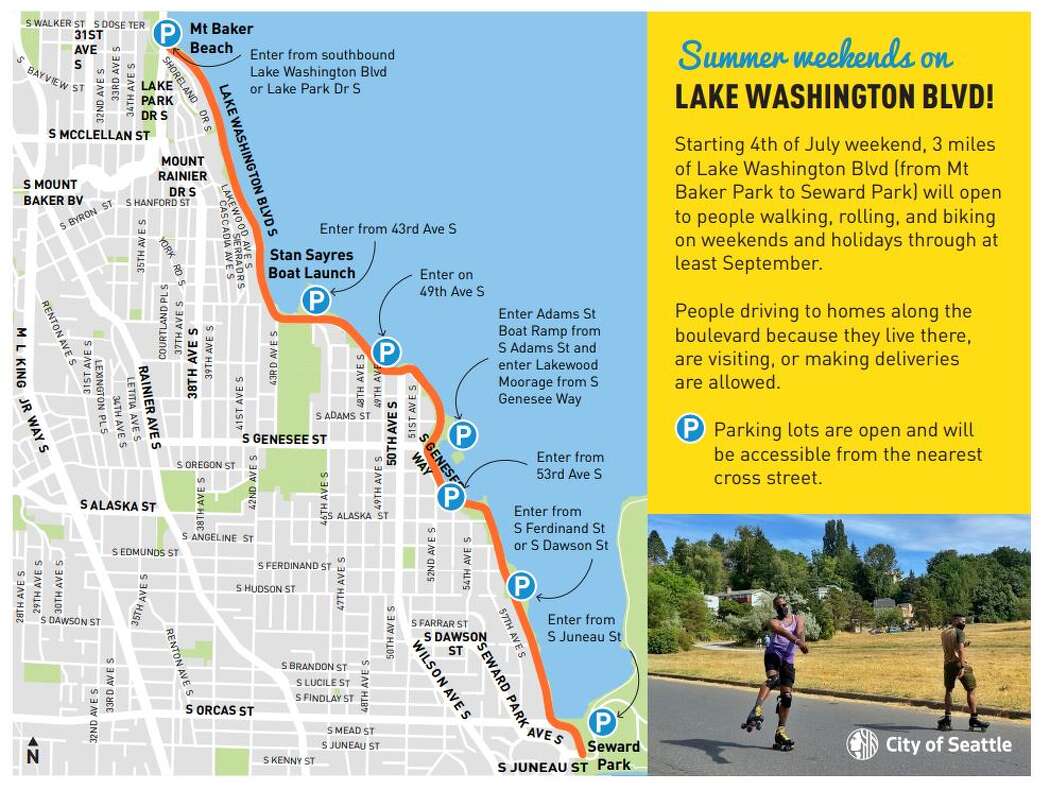 Seattle to close 3 miles of streets to cars on Lake Washington Boulevard on weekends