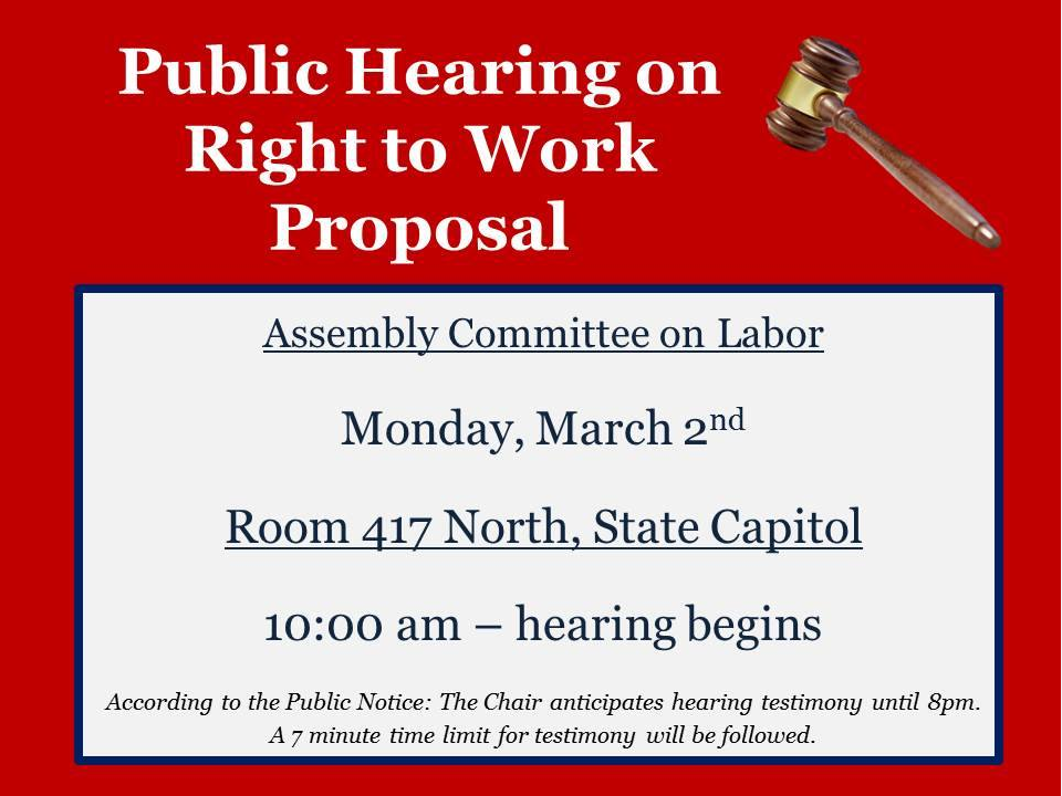 And so it begins...the Wisconsin #Republicans Assembly hearing on Right to work for less