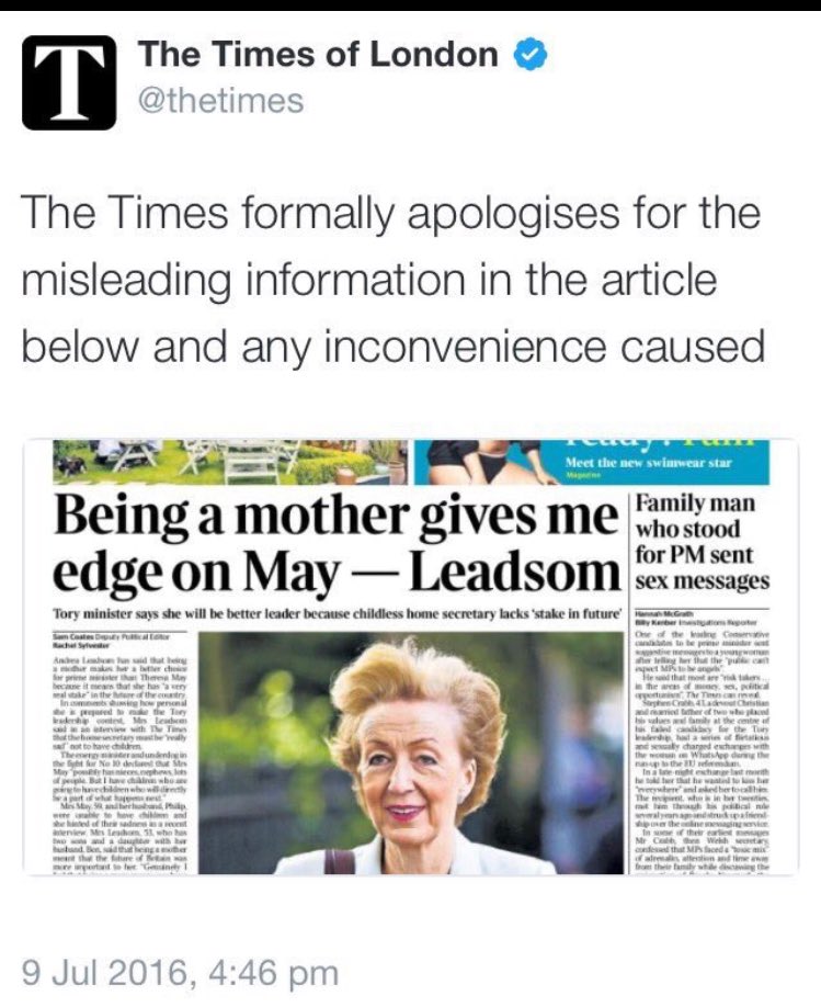(8,975 posts)They started out buying Leadsom's claim and dismissing it as The Times misquoting her.