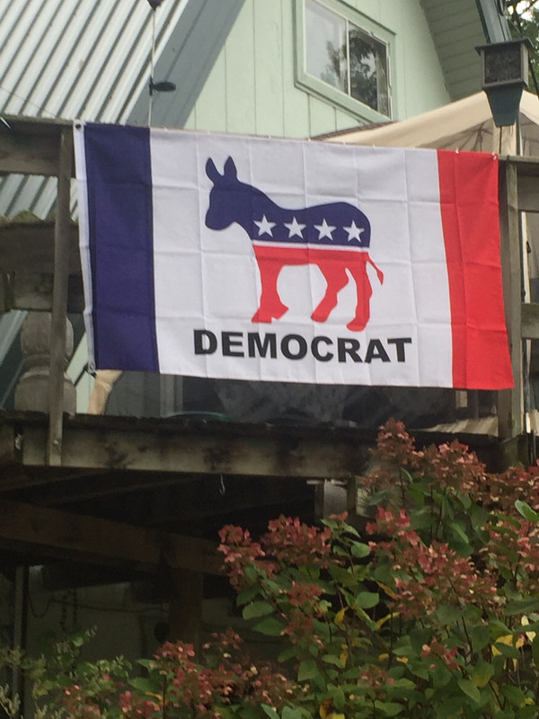 (592 posts)banner hanging on the wall in my garage. It's in clear view for the neighbors as they drive by. (when the doors are open) I've had it about ten years. There is no doubt to my political leanings.