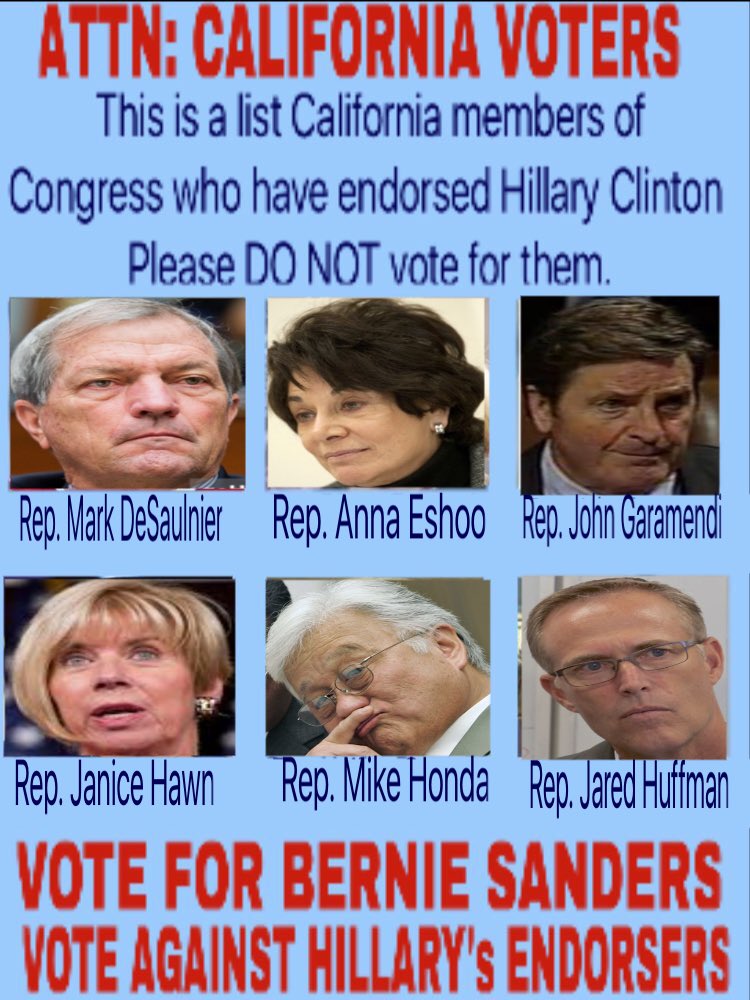 Please vote against these House members who've endorsed Hillary ! #FeelTheBern #CAPrimary