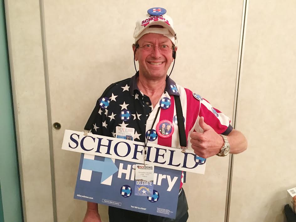 Red, white, blue, and a whole lot of Hillary stickers. #NVConvention