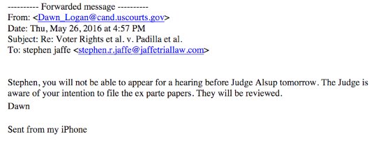 (3,284 posts)California: Bernie threatened nonsense "emergency" request not filed by noon deadline & told YESTERDAY no hearing