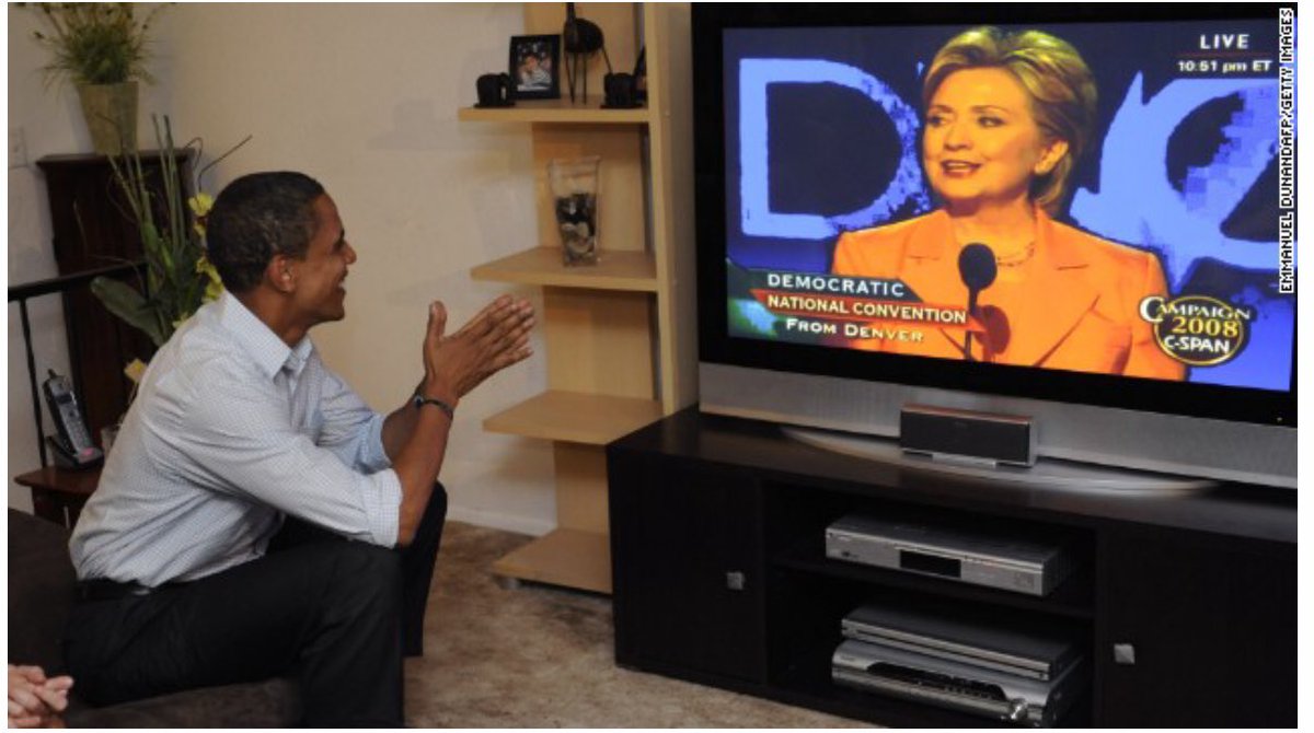 Aug 26, 2008: Sen Obama watches Sen Clinton at the DNC uniting the party. No protests, riots or conspiracy theories.