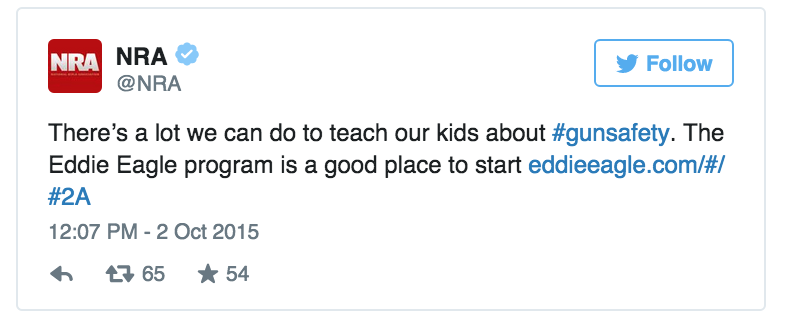 The NRA's first tweet since the massacre in Oregon was about a kid's gun program http://bit.ly/1hfU1nc