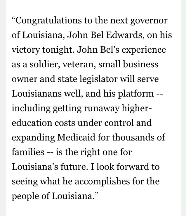 Hillary Clinton's statement on Jon Bel Edwards election win for LA Gov (Original Post)