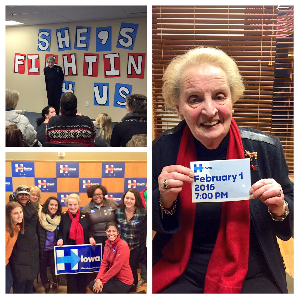 Related: About this forumMadeleine Albright campaigns for Hillary Clinton in Iowa