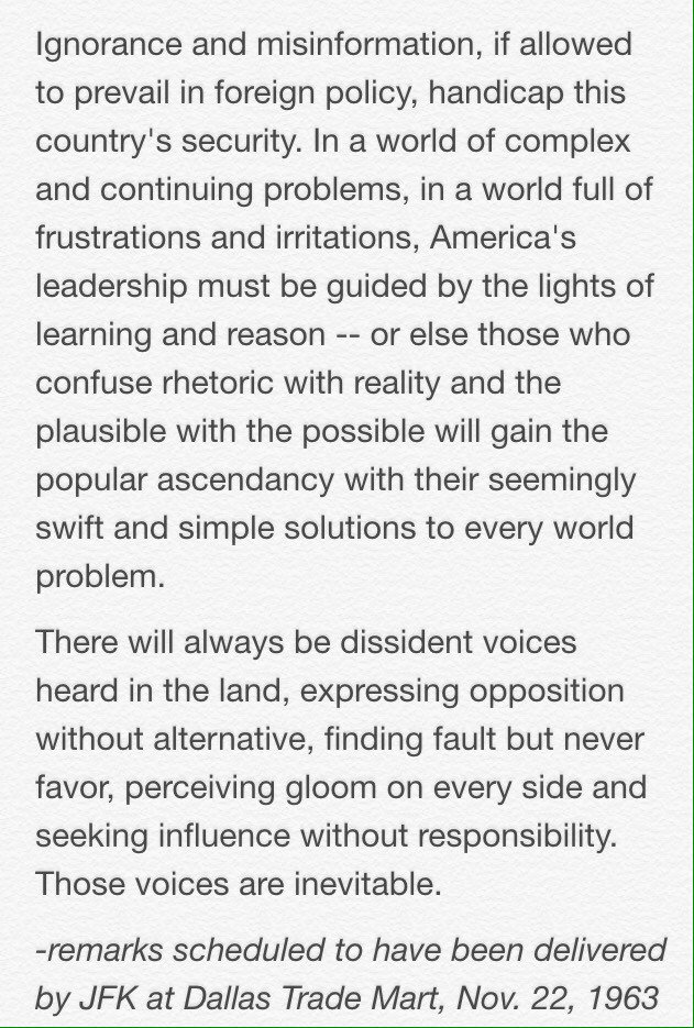 Related: About this forumBernie Sanders never released his Foreign Policy Policies--NEED to Heed the words of JFK