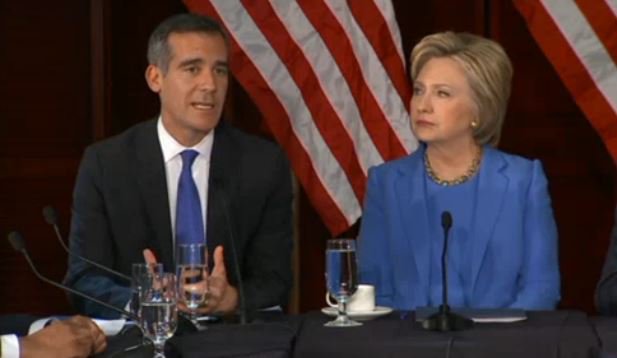 WATCH LIVE: Hillary Clinton meets with LA Mayor Eric Garcetti.