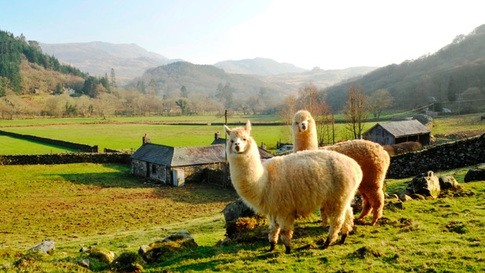 Alpacas from the Andes are guarding a flock of sheep at the National Trusts farm, Hafod-y-Llan in north Wales.