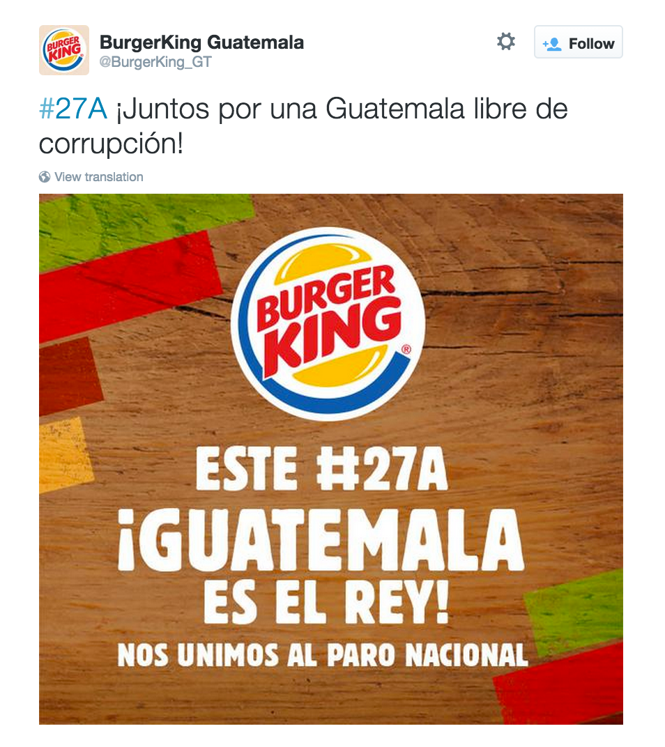 So if this uprising spreads, if it becomes an even broader, deeper movement, and you move from the question of corruption to the question of justice for mass murder, that can only be resolved by implicating not just Pérez Molina personally, but also the Guatemalan army as a whole institution, also the U.S. government, which has armed, trained and financed that army, backed that program of slaughter, which the American CIA had Pérez Molina on the payroll when he was head of G-2, the intelligence unit. And it also can't be resolved without implicating CACIF, the association of the oligarchy, which backed the army during the slaughter and which, individually, ran its own death squads. The oligarchs, the young men, would go through what was kind of a ritual of bloodying their own hands, and if there was a union-organizing drive at their fathers' factory, some of the boys would get together, and they'd go out and kill the unionists. And those young men who did that in the '80s are now in their fifties and sixties, and they're the leaders of the Guatemalan oligarchy. So the last thing they want to see is a true investigation and bringing to justice of perpetrators. That's the last thing Washington wants to see.