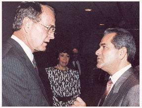 buttonholes George H.W. Bush
