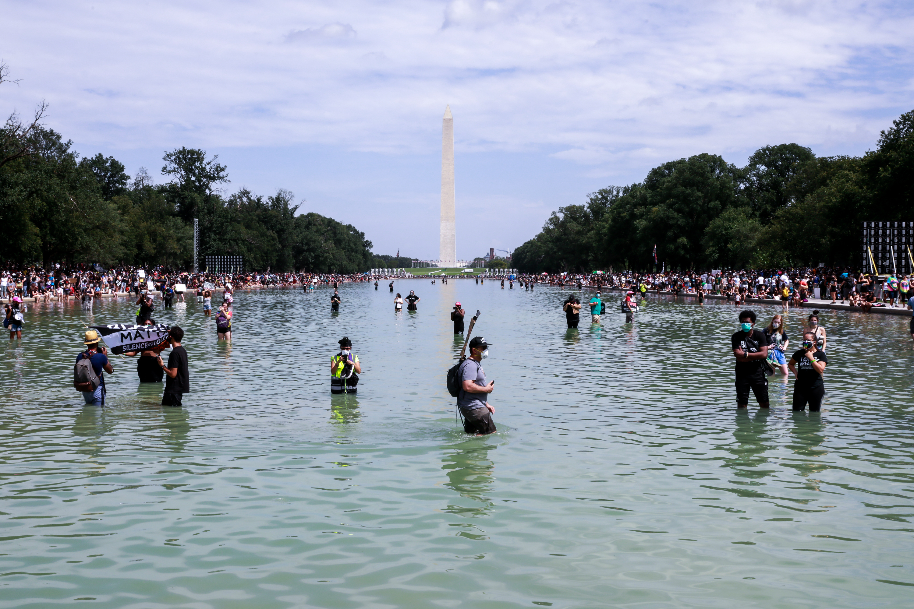 Washington cops probably prefer to not drag these hot, wet taxpayers to the station to arrest them for befouling the reflecting pool.