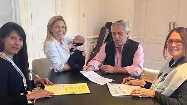 Argentine President Alberto Fernández and First Lady Fabiola Yáñez sit down with census takers on Wednesday. She holds their infant son Francisco, born April 11th.