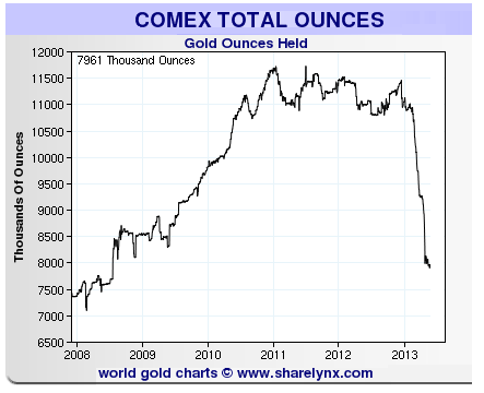 And I am sure that by now you know that I am persuaded that big changes are coming to long standing global currency arrangements. My first take was that on the whole this remarkable inventory drawdown in public repositories in the West resembles the receding of the ocean after an earthquake. I don't think the bankers realize the signals that they sent to the markets with the manner in which they handled Cyprus. And MF Global and the entire financial crisis for that matter. These things take time to build, and then it seems that suddenly people begin to act. We will have to wait and see what comes next, and, as Nick points out, what the inventory levels do when the price of gold starts rising again.
