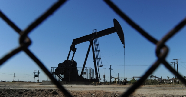 Oil pumps in operation at an oilfield near central Los Angeles on February 2, 2011. (MARK RALSTON/AFP/Getty Images)
