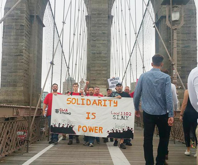 Sept 18 - Thousands of union workers marching across the Brooklyn Bridge #spectrumstrike