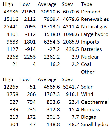 Except for tiny in state coal capacity - with coal buried in "imports" - the most reliable form of energy in that State, as reflected by the standard deviation was the nuclear plant at Diablo Canyon.